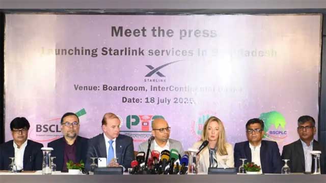 রাজধানীর হোটেল ইন্টারকন্টিনেন্টালে শুক্রবার (১৮ জুলাই) আয়োজিত এক যৌথ সংবাদ সম্মেলনে স্টারলিংক সেবার আনুষ্ঠানিক উদ্বোধন করা হয়। এ উপলক্ষে ঘোষণা দেওয়া হয় যে, বাংলাদেশ স্যাটেলাইট কোম্পানি লিমিটেড (বিএসসিএল) এখন থেকে স্টারলিংকের অফিসিয়াল রিসেলার হিসেবে দায়িত্ব পালন করবে।
