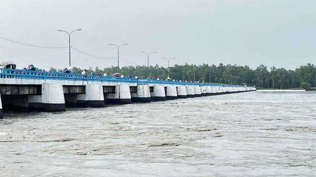 বুধবার (১৩ আগস্ট) সকাল ৯টায় পানিপ্রবাহ রেকর্ড করা হয় ৫২ দশমিক ২০ সেন্টিমিটার, অর্থাৎ বিপৎসীমার ৫ সেন্টিমিটার ওপর দিয়ে প্রবাহিত হচ্ছিল। এর আগে সকাল ৬টায় পানির প্রবাহ ছিল ৫২ দশমিক ২২ সেন্টিমিটার। অর্থাৎ ৭ সেন্টিমিটার ওপর দিয়ে পানি প্রবাহিত হয়।