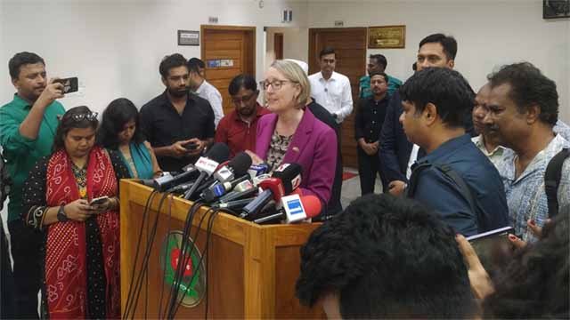 তিনি বলেন, শান্তিপূর্ণ, অবাধ, সুষ্ঠু নির্বাচনে সহায়তা দিতে চায় তারা। এছাড়া পোলিং স্টাফদের প্রশিক্ষণ এবং ভোটার শিক্ষণ কার্যক্রমে সহায়তা দিতে চায় তার দেশ।