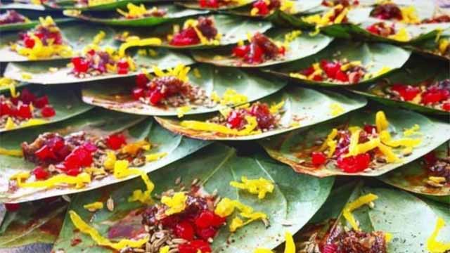 আবার গ্রামের বিয়ে বাড়ি, খাতনা উৎসব বা সামাজিক বড় মেজবানি খাবারের পর অনেক জায়গায় বিশেষ পান পরিবেশন যেন একটি সুন্দর ও আমোদী রেওয়াজ রয়েছে। এখানে পান পরিবেশনের বিষয়টি সব জাত-ধর্মে সবার মধ্যেই বিদ্যমান দেখা যায়।