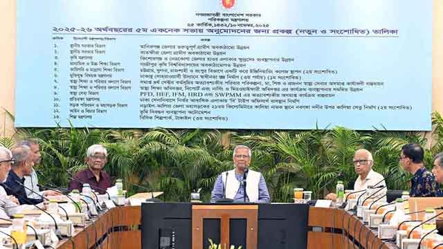 সোমবার (১০ নভেম্বর) রাজধানীর শেরেবাংলা নগরের এনইসি সম্মেলন কক্ষে একনেক সভা শেষে বিজ্ঞপ্তিতে এ তথ্য জানানো হয়। বৈঠকে সভাপতিত্ব করেন প্রধান উপদেষ্টা এবং একনেক চেয়ারপারসন ড. মুহাম্মদ ইউনূস।