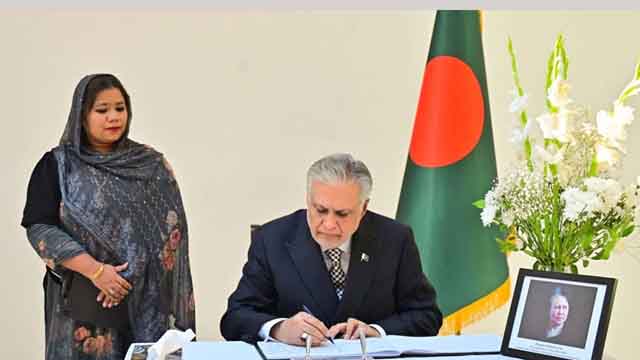 ইসলামাবাদের বাংলাদেশ হাইকমিশনে গিয়ে সাবেক প্রধানমন্ত্রী খালেদা জিয়ার প্রয়াণে শোক জানিয়েছেন পাকিস্তানের পররাষ্ট্রমন্ত্রী ইসহাক দার।