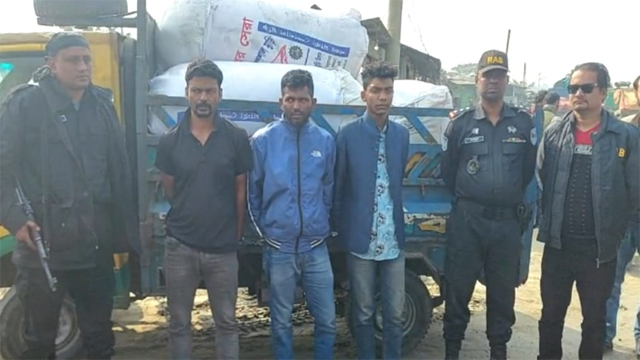 লক্ষ্মীপুরে ৫৫ কেজি গাঁজা ও একটি পিকআপভ্যানসহ তিন মাদক ব্যবসায়ীকে আটক করেছে র্যাব। মঙ্গলবার (২৭ জানুয়ারি) সকালে সদর উপজেলার মজুচৌধুরীর হাট এলাকায় র্যাব-১১ অভিযান চালিয়ে তাদের আটক করে। আটকরা হলেন মাদক ব্যবসায়ী আপন ও করিম। তারা রামগতি উপজেলার বাসিন্দা। অপর আটক পিকআপভ্যান চালক গাজীপুর জেলার বাসিন্দা মাছুম।